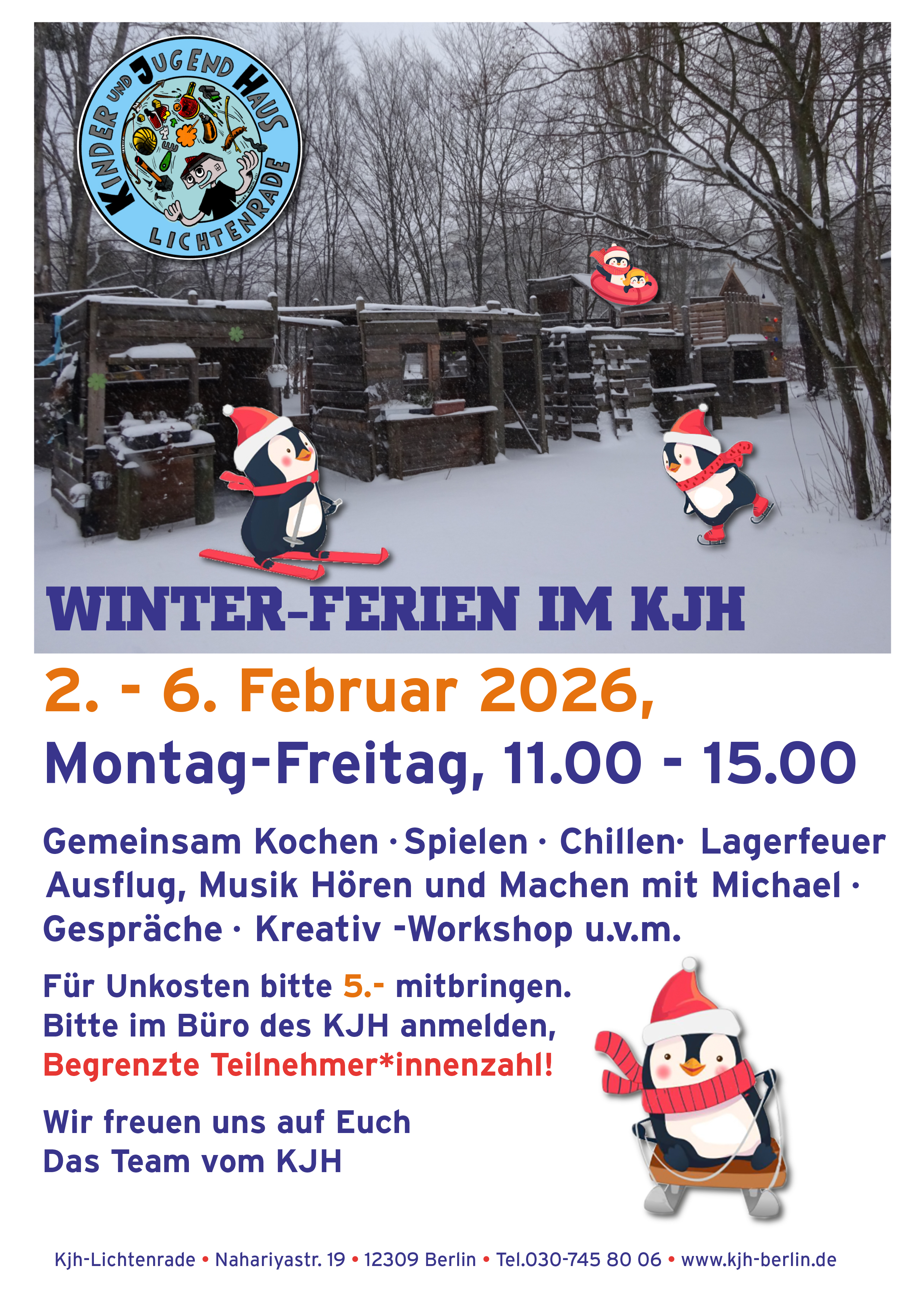 Save The date! Winterferienproramm vom 2.-6. Februar , 11.00-15.00!